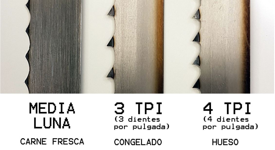 - Cinta de sierra 3 TPI (3dientes por pulgadas) diseñada especialmente para cortar la carne congelada.
