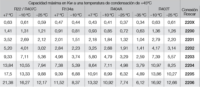 Maximum capacity in Kw at a condensation temperature of + 45ºC