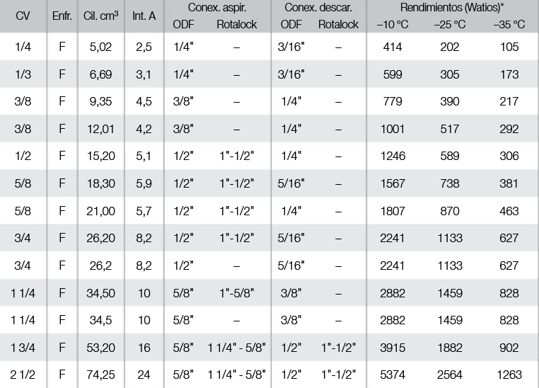 Condensation temperature + 45ºC and gas aspirated at + 20ºC
