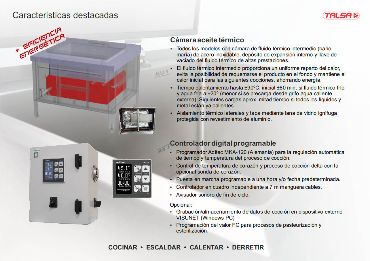 - Greater electrical power kW, leader in the sector, improved cooking times.