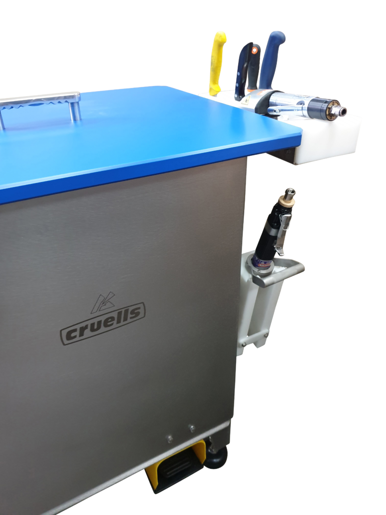 Solución perfecta para salas de despiece medianas, obradores artesanales y empresas que trabajan tanto jamón como paleta y necesitan optimizar el espacio y la inversión en maquinaria.