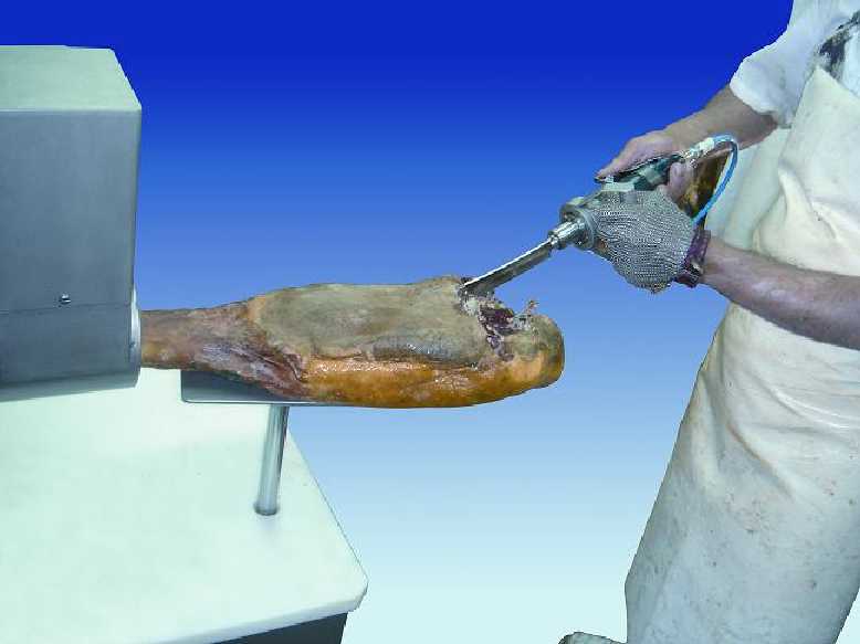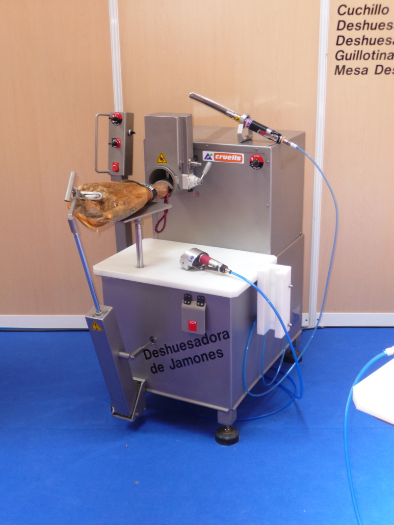 La deshuesadora polivalente de jamones Modelo F-1 es una máquina de proceso completo que integra en una única estación todas las operaciones necesarias para el procesado del jamón: pelado inicial, gubiado, extracción del cóxis y deshuesado final. Su sistema combinado neumático y electromecánico ofrece máxima versatilidad y adaptabilidad a los diferentes métodos de trabajo.