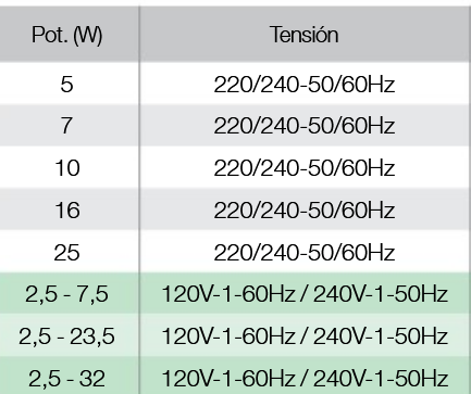 Con 5 posibilidades de anclaje, suministro sin patas y sin hélices.
