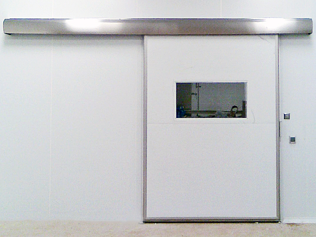 La puerta corredera para salas blancas es una solución de acceso en formato deslizante diseñada para instalaciones de producción controlada donde el espacio disponible para la apertura pivotante es limitado o donde el control del flujo de aire durante el paso es un factor de diseño. Su sistema de apertura lateral mantiene el plano de sellado perimetral y garantiza la estanqueidad de la sala en posición cerrada.