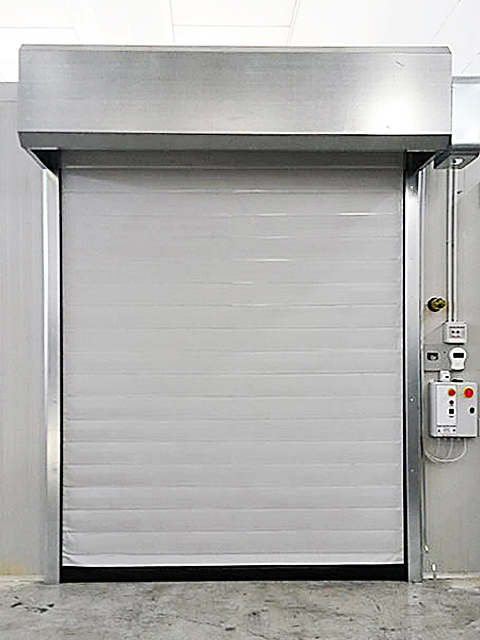 La puerta rápida Frigoroll 1 es una solución de cierre especializada para accesos frigoríficos de uso frecuente, diseñada para mantener las condiciones de temperatura en cámaras de conservación y congelación con la mínima pérdida energética por ciclo de apertura. Su lona técnica con propiedades de aislamiento térmico permite velocidades de apertura superiores a las puertas rígidas convencionales sin comprometer el rendimiento térmico.